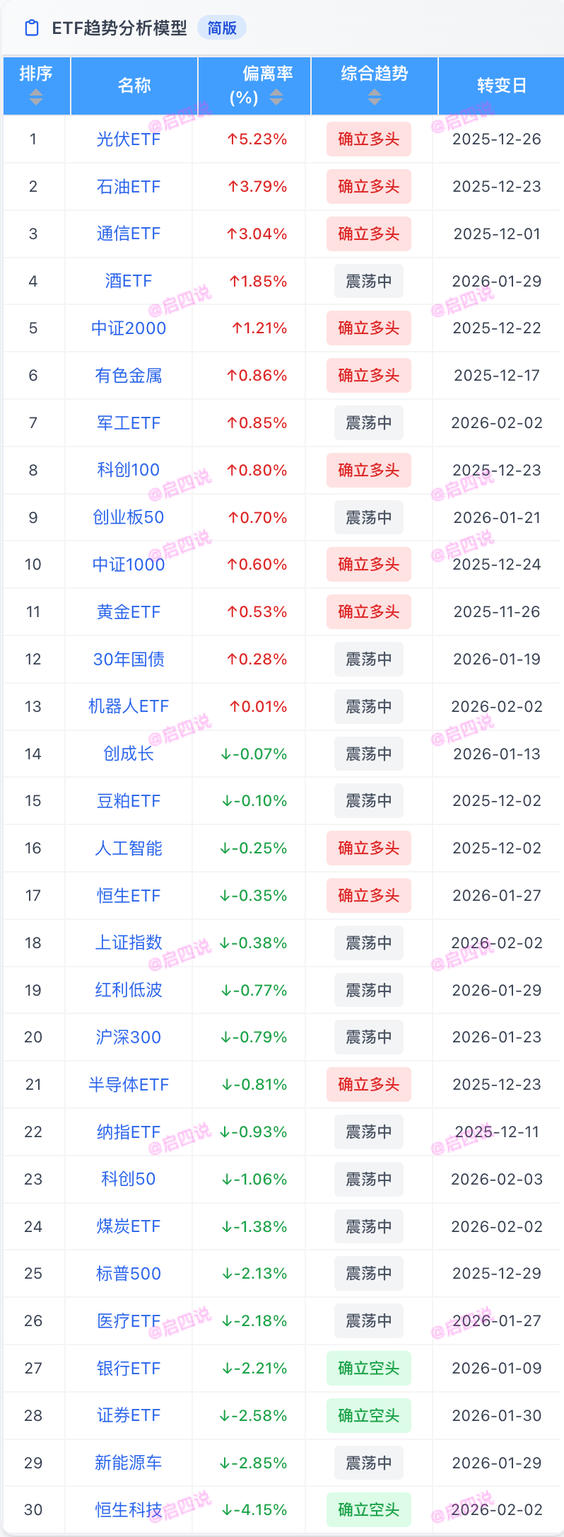 最强势资产:光伏ETF、石油ETF、通信ETF