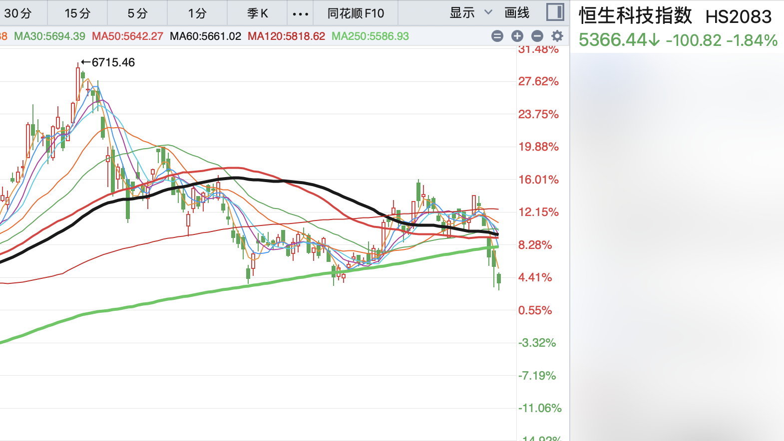 一般来说,从前高回撤超过20%(从6715点跌破5372点),在金融定义上就算进入技术性熊市。